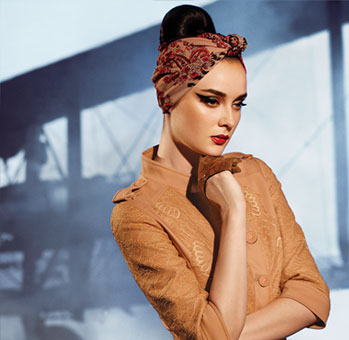 收腰大衣、大大的傘裙塑造的LOOK都如同希區柯克金發女郎。