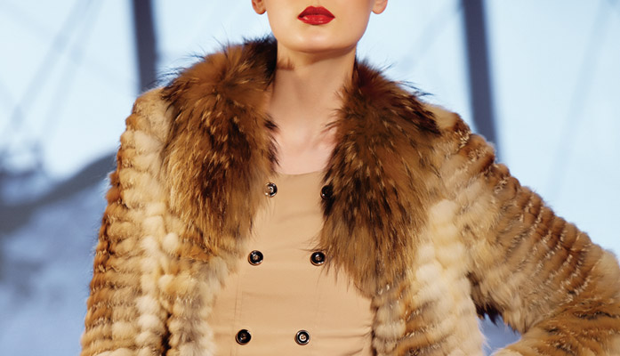 圍繞著(zhe)奢華、女人味爲主題,以面料拼接皮草(cǎo)達到(dào)華麗的效果。